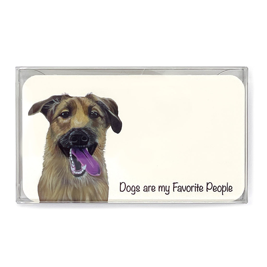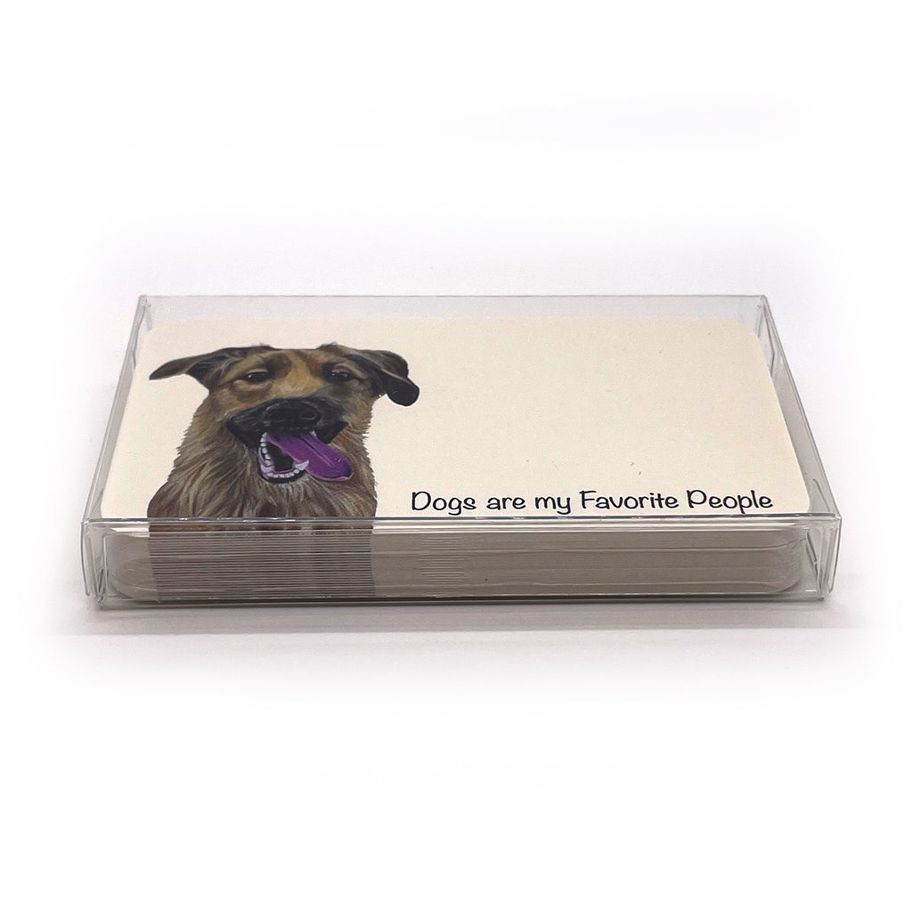 Pawsitive Notes come in a pack of 25 identical cards. They are printed on natural, uncoated paper that is 2" x 3.5" and packaged in a small plastic box so you can take them with you wherever you go!