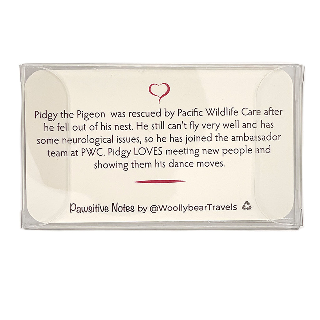 Pawsitive Notes come in a pack of 25 identical cards. They are printed on natural, uncoated paper that is 2" x 3.5" and packaged in a small plastic box so you can take them with you wherever you go!