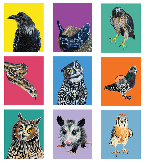 I recently finished 5 more paintings featuring Animal Ambassadors from Pacific WIldlife Care in Morro Bay, CA. Now you can get all 9 Ambassador Animal gifts!