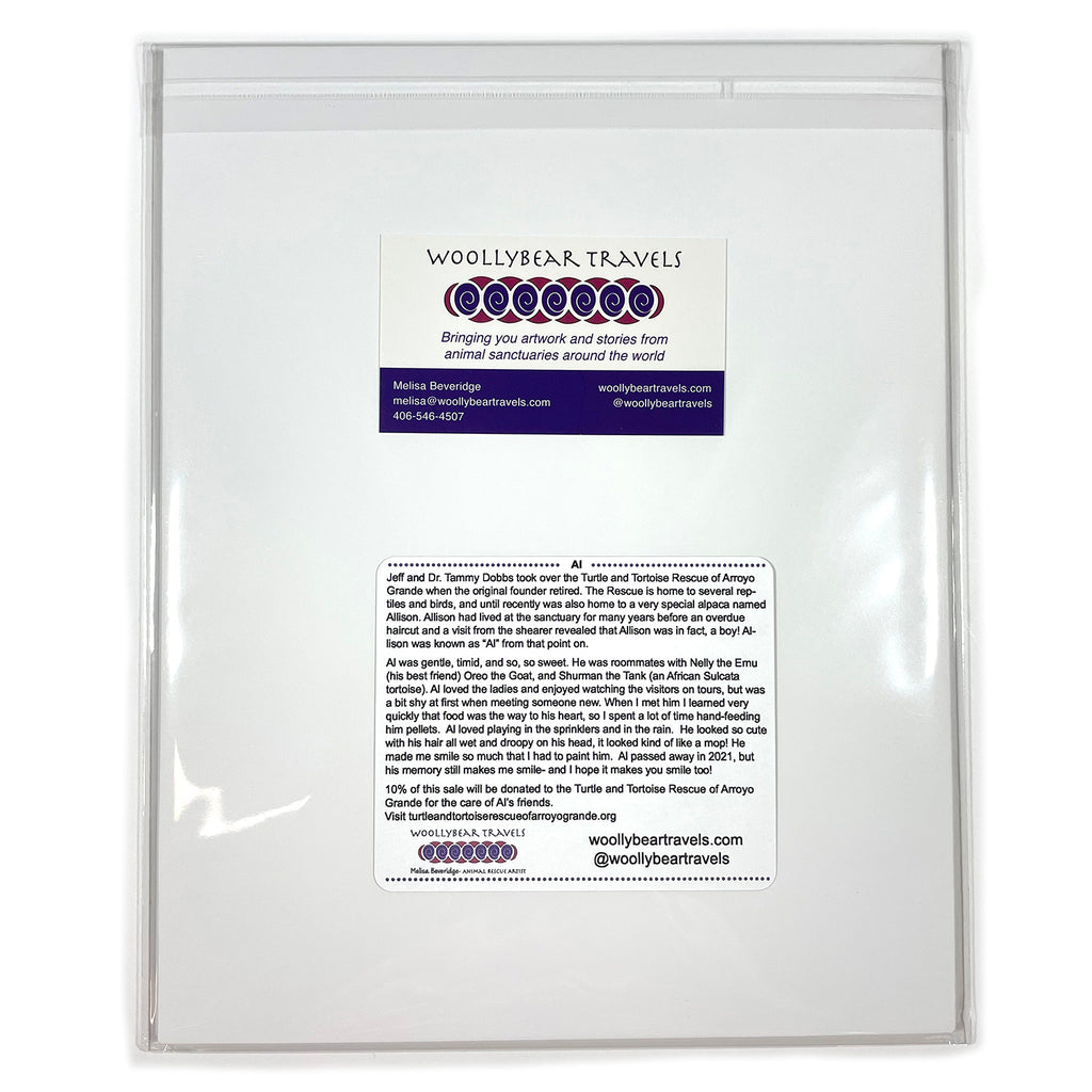 10% of this sale will be donated to the Turtle and Tortoise Rescue of Arroyo Grande for the care of Al’s friends. By purchasing my products you are not only supporting me to do more of this work helping animals, you are also supporting the sanctuary and all of the animals that live there!