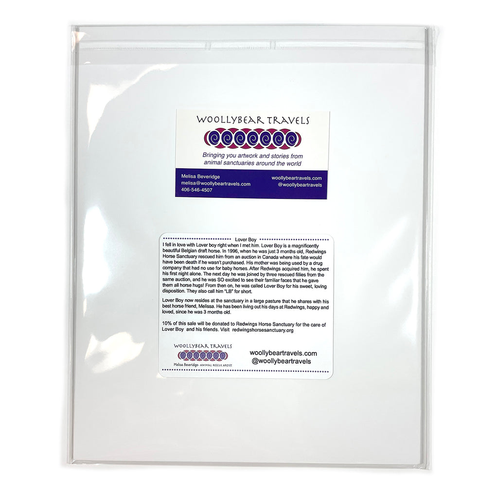 This signed 8" x 10" Matte Print is packaged with a sturdy backing. The story of Lover Boy is on the back of the print so you can learn more about him and his precious personality