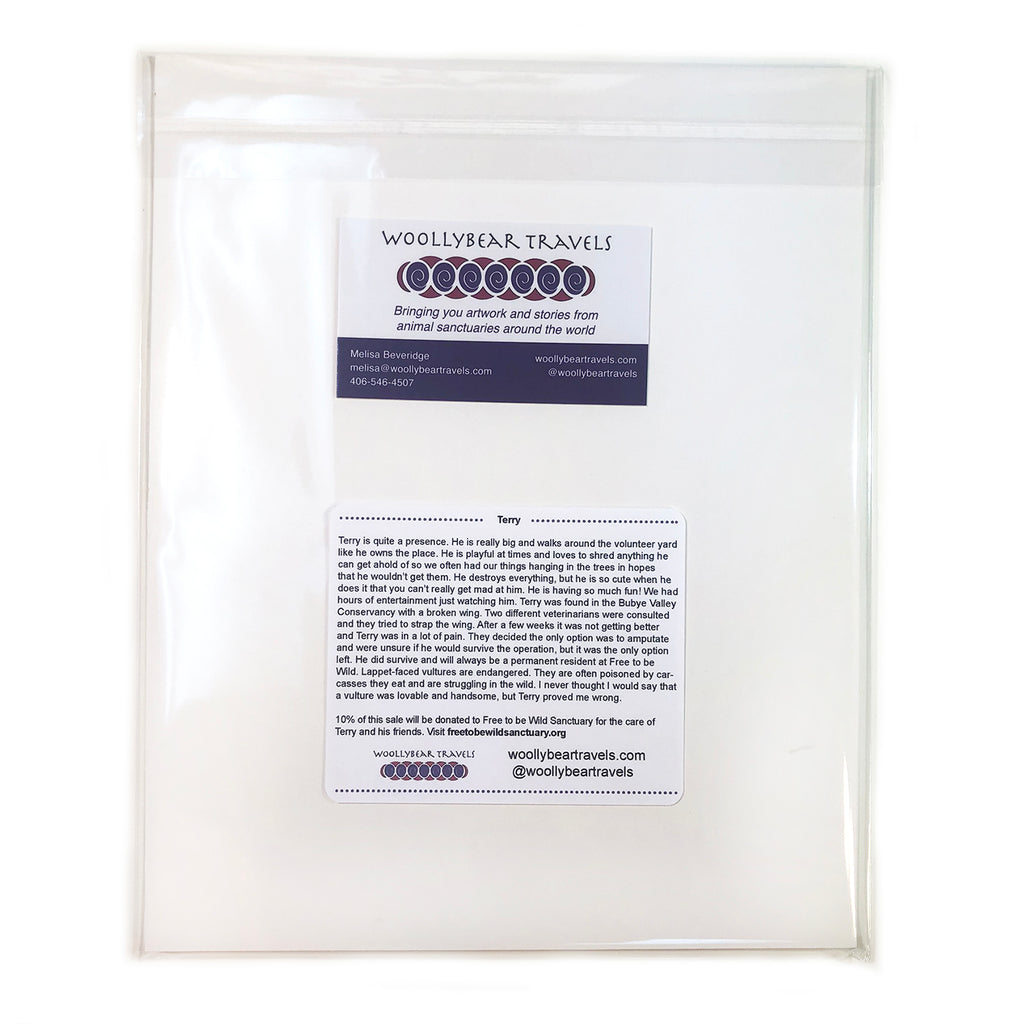 10% of this sale goes back to Free To Be Wild Sanctuary to help provide all the love and care that Terry and his friends need. By purchasing my products you are not only supporting me to do more of this work helping animals, you are also supporting the sanctuary and Terry!