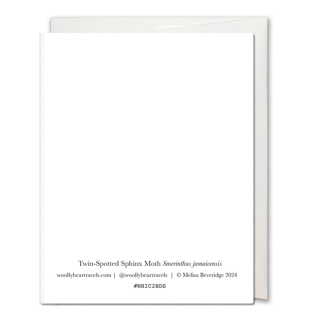 This beautiful Twin-Spotted Sphinx Moth is such a pretty moth.  I love a moth with Pink in it! It states "Have a Magical Birthday! This 4.25" x 5.5" (A2 size)  greeting card with a white square flap envelope is blank inside.