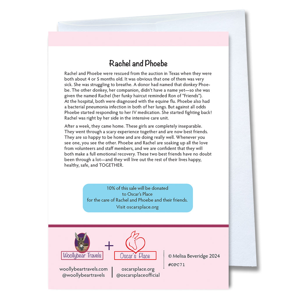 10% of this sale will be donated to Oscar’s Place for the care of Rachel and Phoebe and their friends. By purchasing my products you are not only supporting me to do more of this work helping animals, you are also supporting the sanctuary and all of the animals that live there!