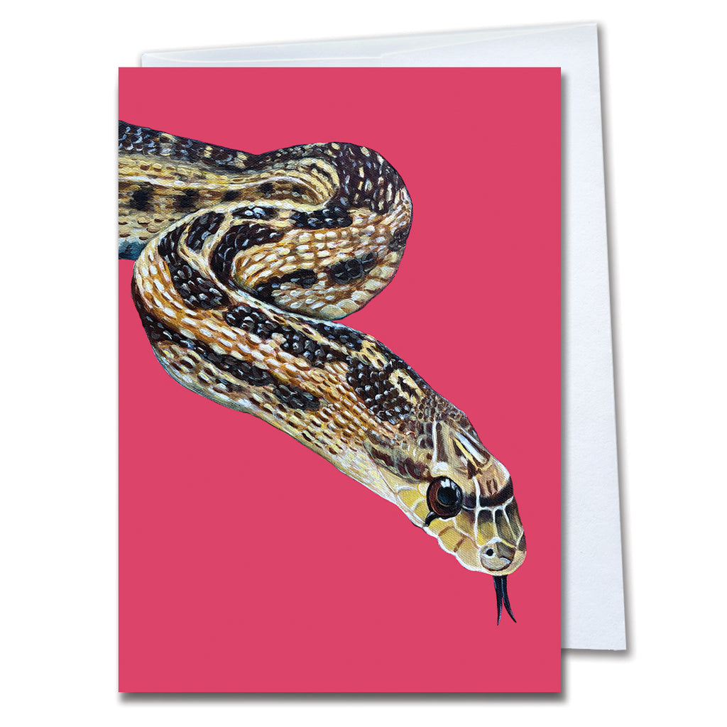 This 5" x 7" blank greeting card with envelope features William Snakespeare, a very friendly Gopher Snake who is an Animal Ambassador for Pacific Wildlife Care. His special story is printed on the back of the card so you can learn a bit more about him and his amazing personality.