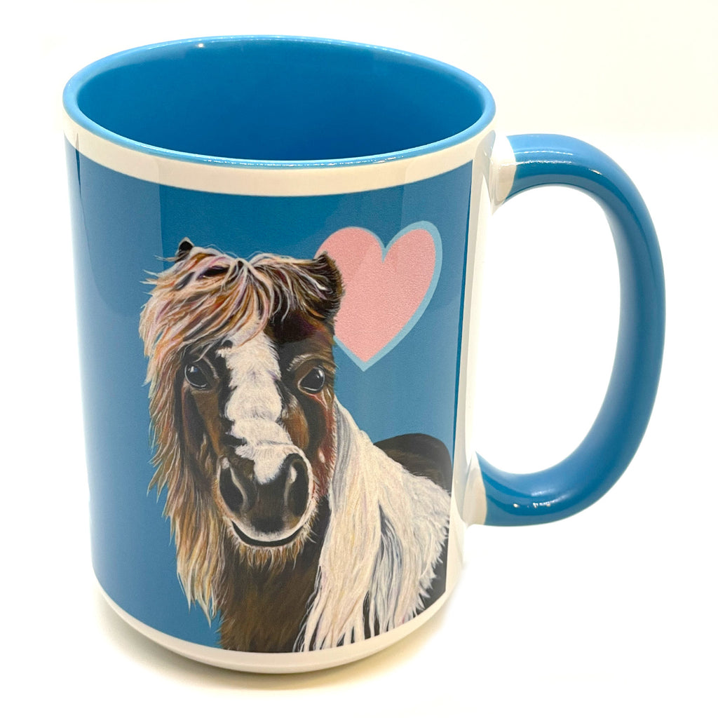 This 15 oz mug is perfect for your morning coffee or tea. The handle and the inside of the mug are light blue. Looking at Little Bit’s precious face first thing in the morning is sure to make you smile.